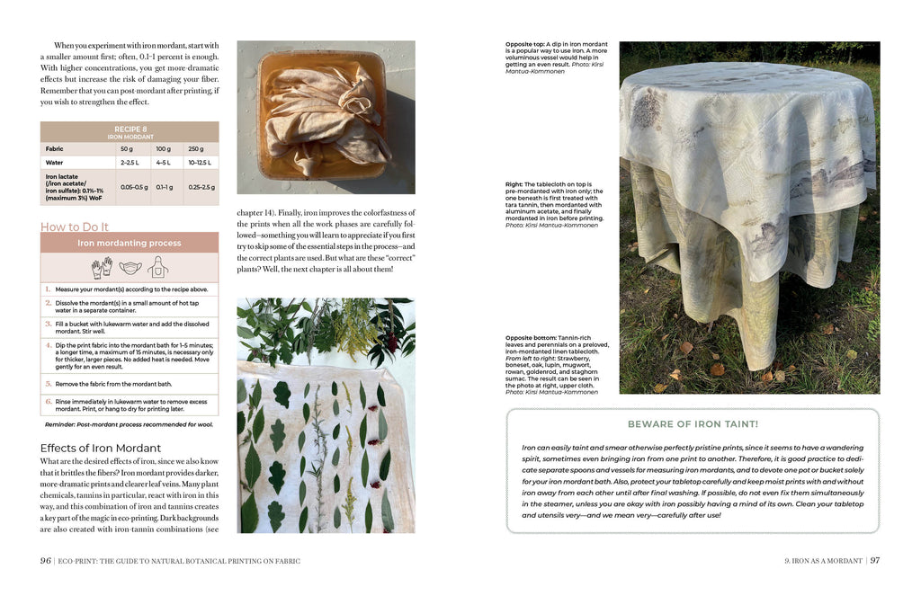 Kirsi Mantua-Kommonen is a color and natural dye researcher with a D.Sc. in business and economics. Kirsi’s work focuses on the functional properties of natural dyes. She teaches natural dyeing and eco-printing at universities and schools and gives workshops internationally. Her research includes analysis of innovative fungi uses, including for eco-printing.