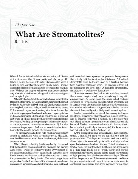 Bob Leis is an avid admirer and collector of stromatolites, algal mats, and any rocks of a stromatolitic and biogenic origin. Bruce L. Stinchcomb, a retired professor of geology, has an interest in stromatolites, the oldest clear evidence for life.